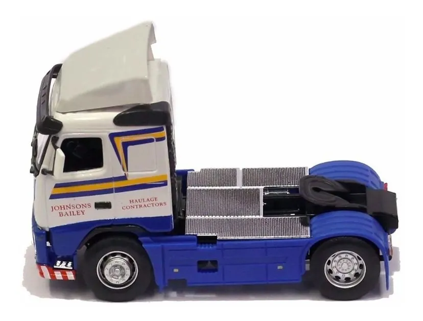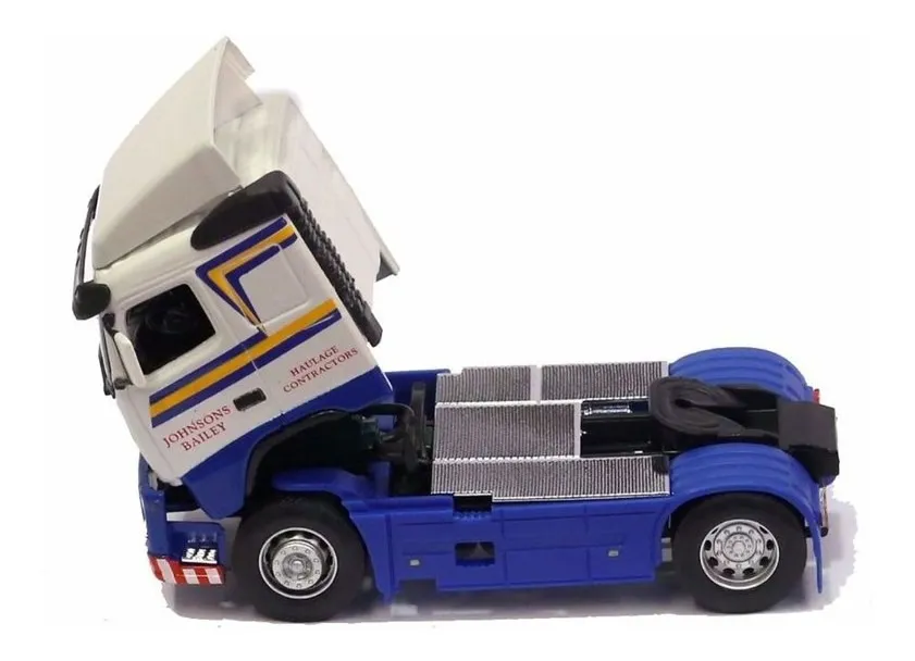 Pintura e Grafismo: Acabamento em azul e branco com logotipos “Container Service” e “Johnsons Bailey Haulage Contractors” aplicados com alta precisão